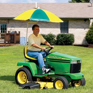The Tri-City Herald reports officers in Washington state responding to a burglary call Tuesday morning found a 31-year-old man riding the mower in the street, pulling a trailer of other lawn care equipment.