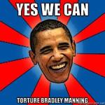 “Meanwhile, the Obama administration has decided to make Manning’s pre-trial existence as torturous as possible, holding him in solitary confinement for 23 hours a day since his arrested ten months ago – treatment which Psychologists for Social Responsibility notes is, “at the very least, a form of cruel, unusual and inhumane treatment in violation of US law”.