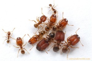 Pheidole (big-headed) ant colonies contain millions of ants, including minor workers and soldiers. Depending on the food ants are fed, certain hormones are triggered in the ant larvae and they either develop into soldiers or minor workers.”