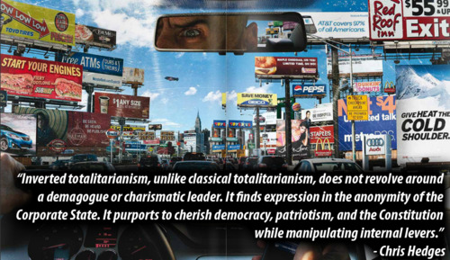 No doubt these remarks will be dismissed by some as alarmist, but I want to go further and name the emergent political system “inverted totalitarianism.” By inverted I mean that while the current system and its operatives share with Nazism the aspiration toward unlimited power and aggressive expansionism, their methods and actions seem upside down. For example, in Weimar Germany, before the Nazis took power, the “streets” were dominated by totalitarian-oriented gangs of toughs, and whatever there was of democracy was confined to the government. In the United States, however, it is the streets where democracy is most alive–while the real danger lies with an increasingly unbridled government.