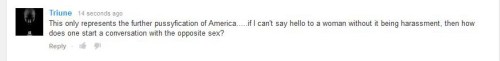 #3. This only represents the further pussyfication of America… if I can’t say hello to a woman without it being harassment, then how does one start a conversation with the opposite sex?