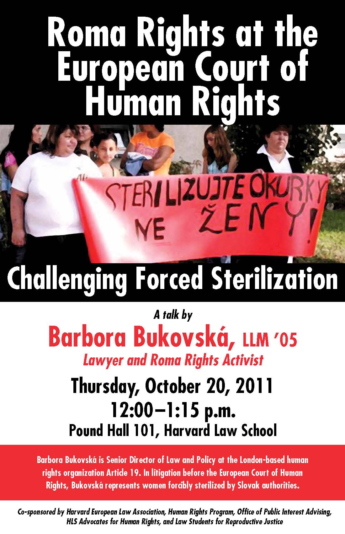 “Between 1971 and 1991 in Czechoslovakia, now Czech Republic and Slovakia, the “reduction of the Roma population” through surgical sterilization, performed without the knowledge of the women themselves, was a widespread governmental practice. The sterilization would be performed on Romani women without their knowledge during Caesarean sections or abortions. Some of the victims claim that they were made to sign documents without understanding their content. By signing these documents, they involuntarily authorized the hospital to sterilize them. In exchange, they sometimes were offered financial compensation or material benefits like furniture from Social Services – though it was not explicitly stated what this compensation was for. The justification for sterilization practices according to the stakeholders was “high, unhealthy” reproduction.