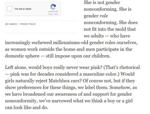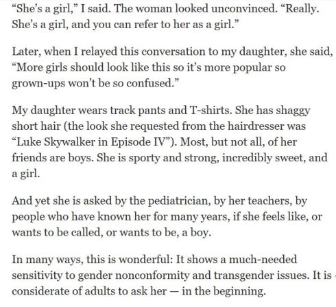 Lisa Selin Davis, in her opinion piece ‘My Daughter is Not Transgeneder. She is a Tomboy.’, writes the following (pardon, the formatting, these are screencaps):
