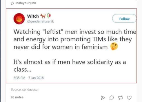 And then you wonder why feminists that struggle for the emancipation of women (adult human females) are calling bullshit on your claims of ‘gender-identity’. It’s fucking patriarchy all the way through and thus, not good for anyone.