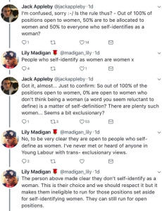 QotD: “Glad to see Young Labour reserving half of the spaces for a self-defining woman in the National Youth Elections”