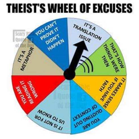 The DWR Sunday Relgious Disservice – The Theist Wheel of Excuses