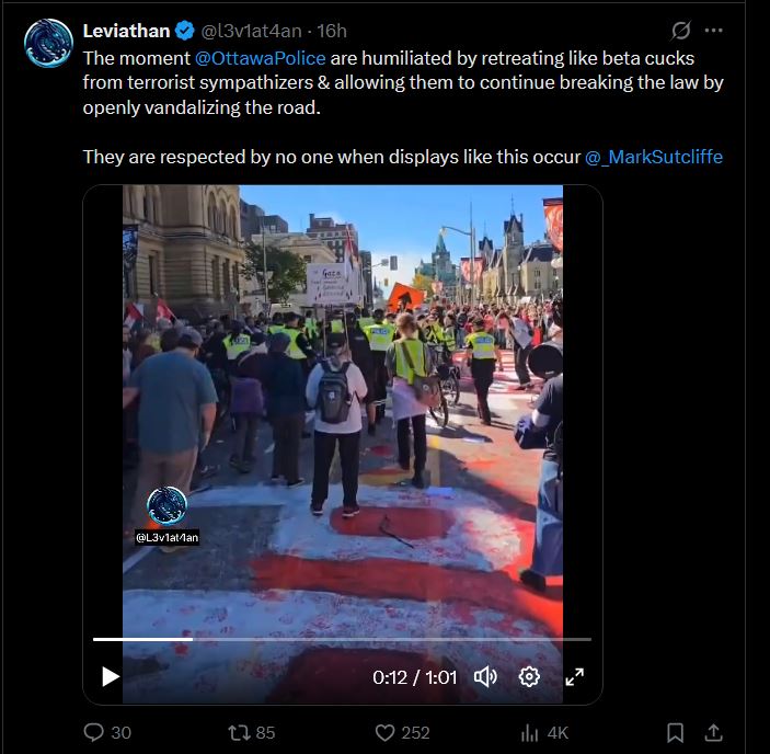 On September 20, 2025, activists from the “Draw the Line” movement staged a highly visible protest directly in front of Parliament Hill, painting a large red-and-white mural on Wellington Street. Ottawa Police closed the street for hours to facilitate the action, citing the use of washable paint, though critics noted that under Canada’s Criminal Code and municipal bylaws, the activity qualifies as vandalism. Two arrests occurred during clashes as protesters attempted to expand the mural near the Prime Minister’s Office. Hundreds participated, and cleanup concluded later the same day, with no reported injuries but lingering questions about liability for slippery surfaces (Ottawa Citizen, CTV News Ottawa, Ottawa CityNews, CBC News). Video evidence posted on X by @l3v1at4an shows police standing by as activists painted, sparking over 450 replies highlighting perceived enforcement disparities (X Thread).