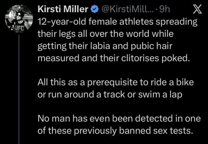 World Boxing is also not what the tweet implies. Its published policy applies to athletes over 18 in World Boxing-owned or sanctioned events, using a once-in-a-lifetime PCR or equivalent genetic test. Again, this is not “little girls can’t ride a bike without a genital exam.” It is a rule for elite competition in a combat sport where fairness and safety are not decorative concerns.