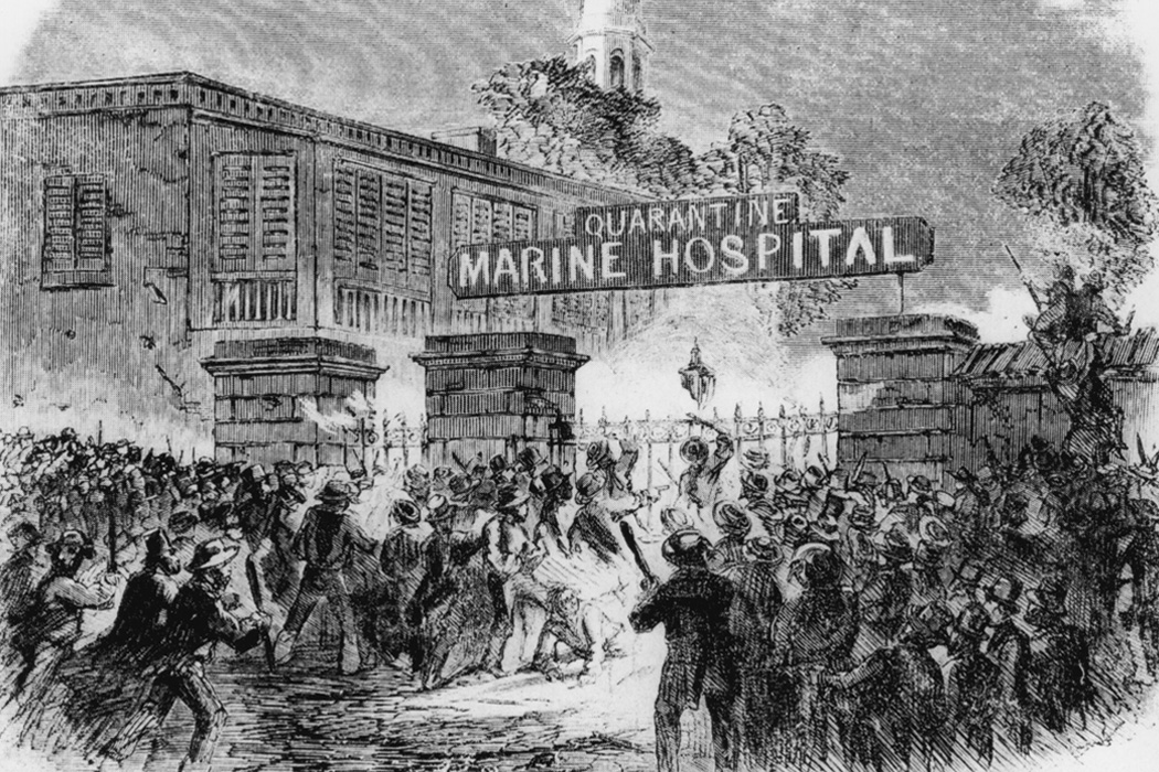 “The New York Times called the vigilantism “the most diabolical and savage procedure that has ever been perpetrated in any community professing to be governed by Christian influences.” Those arrested for leading the action were found not guilty in a trial. But authorities got the message: quarantine facilities were moved off-shore to a boat named after Florence Nightingale, then two islands off Staten Island, and finally, in 1920, to Ellis Island.