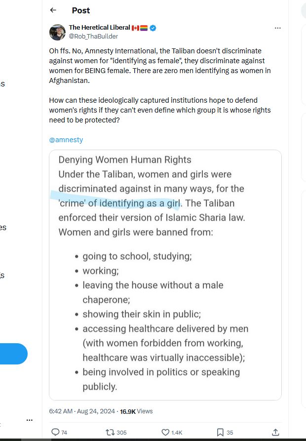 And when their bullshit gender ideology meets the real world they are forced to say inane things like their statement below.