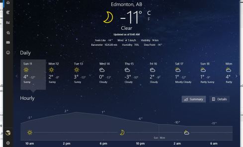 Yeah, so a high of plus 4, but then -12 as a low, then +2 as high then -8 as low. Climactic variability is quite problematic, as +4 degrees centigrade is clearly shorts weather, but -12 degrees centigrade clearly, is not (stop laughing/cringing right now equatorial friends this is warm weather).