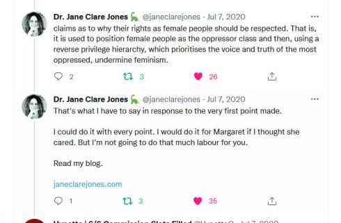Dr.Jane Clare Jones is one of those who quickly cuts to the quick of the hyperbole. So were you looking for an answer to the “you’re erasing my existence ploy” – here it be.