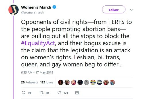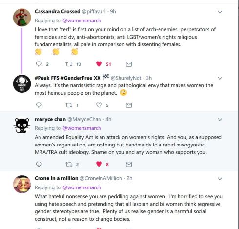 The bullshit is coming full circle now. A purportedly feminist organization using a slur against women who question transgender ideology. We see you Women’s March and note your centring of men in your policies. Fortunately on they are having a rough go of it on twitter as actual feminists are taking their misogyny to task.