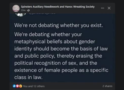But the truth is, gender identity ideology is the poison, a very potent one, and just one drop is enough to destroy entire families, workplaces, schools, and institutions.