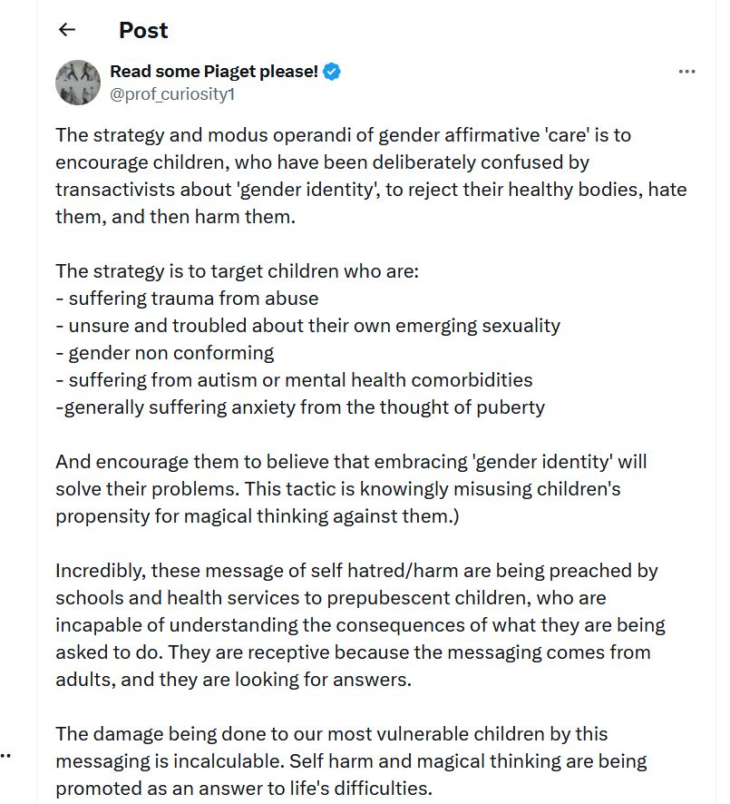 Children are being harmed because medical practitioners are either ideologically captured or too scared to speak out against the grotesque medical experimentation undertaken in the name of transgender ideology.
