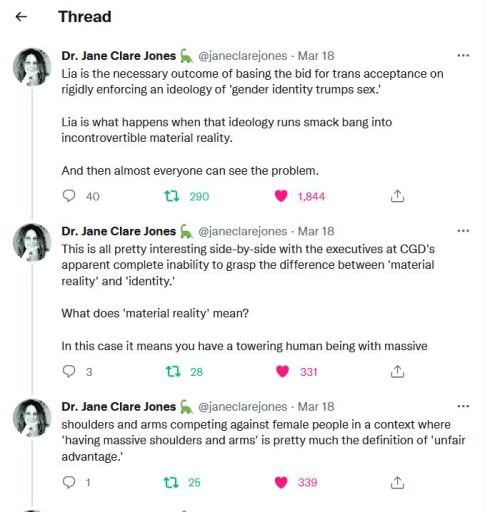 “What was going through Weyant’s [second place female] head as she was trying to chase down Thomas? That’s something that would be interesting to get from the competitor. We do know that Thomas left her own Penn teammates in tears as they prepared to race the biological male all the while knowing they were about to be destroyed by Thomas.