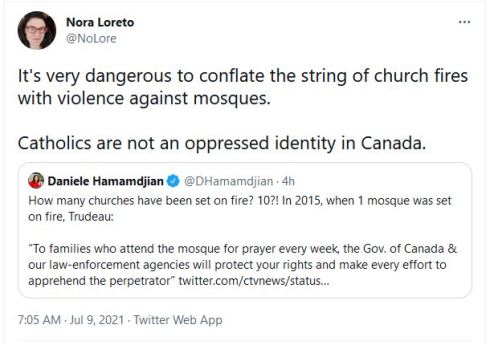 Just in case if you missed it. This is the moral wasteland that much of identity politics leads to. The level of oppression Catholics face in our society is irrelevant the crime that has been committed. Burning down a church is arson. Arson is against the law, for good reason, in our society. There is no “good” or “valid” arson permissible if one wants to live in a reasonable law abiding society.