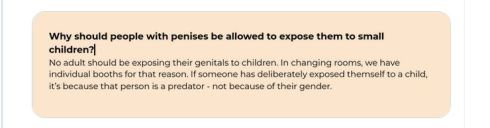 This sort of refutation of transgeder ideological talking points needs to be everywhere. This is not about ‘being kind’ this is about recognizing the reality we all live in and BEING FAIR.