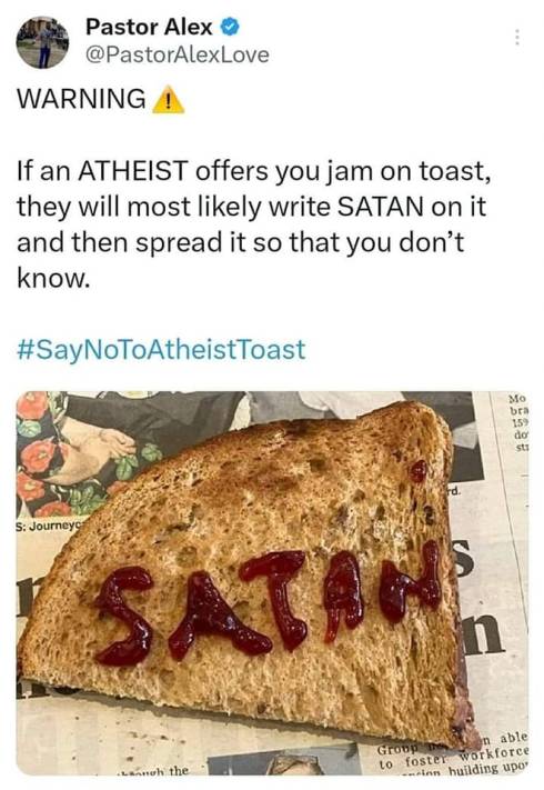 So much scheming and skullduggery going on in the Atheist camp. How do we even fight this mendacity? Not even toast is safe!