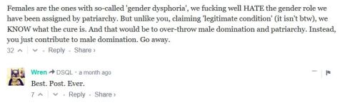 I chose this comment because it is so succinct in describing the problems with the trans activists platform.