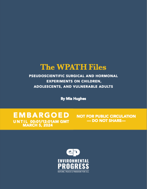 “The WPATH Files show that what is called ‘gender medicine’ is neither science nor medicine,” said Michael Shellenberger, President and founder of Environmental Progress. “The experiments are not randomized, double-blind, or controlled. It’s not medicine since the first rule is to do no harm. And that requires informed consent.”